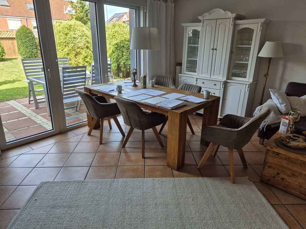 Zum Haus gehört eine Garage mit integriertem Werkstattbereich bzw. Abstellmöglichkeiten für Fahrräder etc. pp. Das Grundstück ist vollständig eingezäunt. Über ein Tor erreicht man den vorderen Hausbereich mit Innenhofbereich des Hauses, welcher zunächst einen zusätzlichen PKW-Stellplatz anbietet. Im eingewachsenen und sichtgeschützen hinteren Bereich des Innenhofes, wurde eine überdachte vordere Terrasse gebaut. Die zusätzliche Gartenterrasse mit einem schönen Blick in den Garten, erreicht man über die Terrassentür des Wohnbereichs.