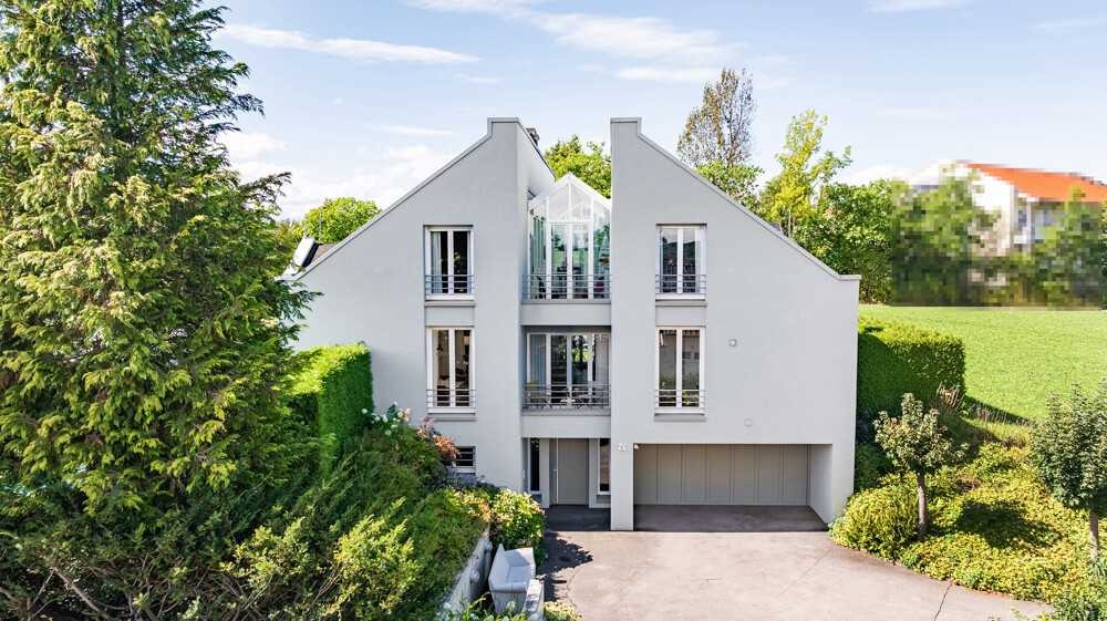Dieses Architektenhaus vereint stilvolles Wohnen, durchdachte Architektur und ein außergewöhnliches Grundstück zu einem Gesamtpaket, das in dieser Form nur selten am Markt zu finden ist. Der markante verglaste Mittelgiebel verleiht dem Haus eine einzigartige Note und sorgt für lichtdurchflutete Wohnbereiche mit besonderer Atmosphäre. Mit Außenpool, großzügiger Raumgestaltung und gepflegtem Ambiente bietet es ideale Voraussetzungen für ein entspanntes Familienleben ebenso wie für Paare mit hohen Ansprüchen.