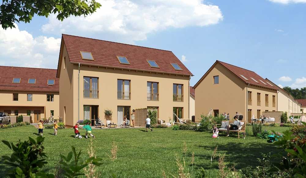Genießen Sie die Nachhaltigkeit und den Komfort eines Effizienzhauses 55 mit moderner Wärmepumpe. Die Fußbodenheizung sorgt für Behaglichkeit. Entdecken Sie die Gemeinschaft im grünen Wohnquartier.