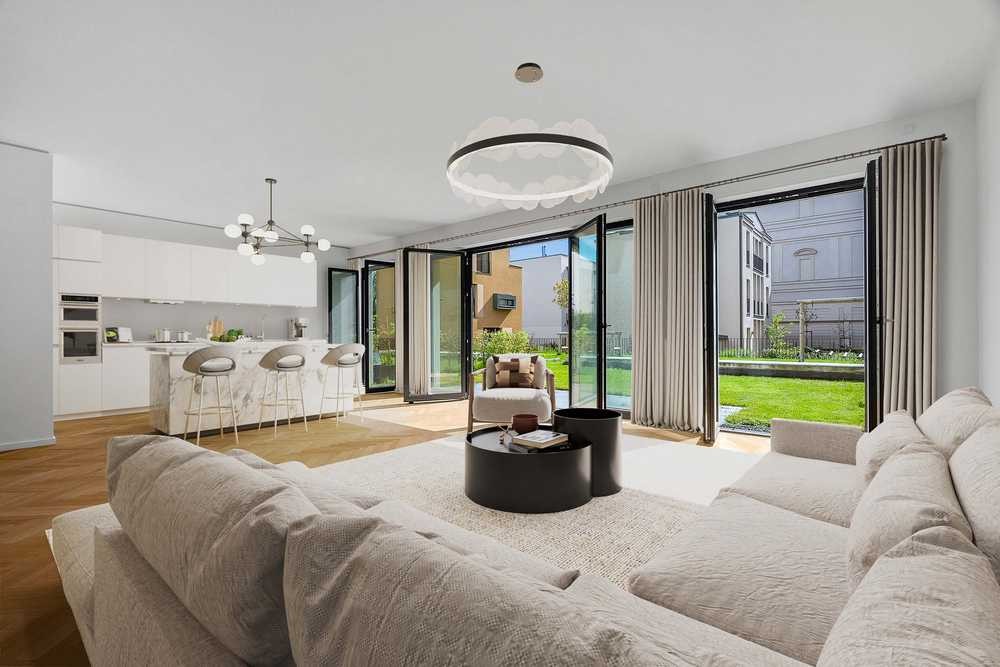 Die Gartenwohnung am Versailler Platz 2 bietet einen komfortablen 3-Zimmer Grundriss mit dazugehörigen, ca. 50m² großen Süd-West Privatgarten, eingebettet in einem modernen und eleganten Neubau mit allen Annehmlichkeiten. Die Option einer Grundrissgestaltung zu einer 4-Zimmer Wohnung lässt sich mit wenigen Handgriffen ebenfalls realisieren. An warmen Sommertagen sorgt eine Kühldecke für wohlige Temperaturen. Die Wohnung ist komplett mit einem Echtholzparkett in Fischgrätmuster verlegt und offeriert ein ca. 43 m² großes Wohnzimmer mit der Möglichkeit einer offenen Einbauküche mit Mittelinsel mit bestem Ausblick zum Barberini Museum & zur Freundschaftsinsel. Während die zwei Schlafzimmer erhöht zum Versailler Platz thronen mit seitlichen Blick zur Freundschaftsinsel. Hierbei genießt ein Schlafzimmer den Komfort eines en suite Badezimmers.