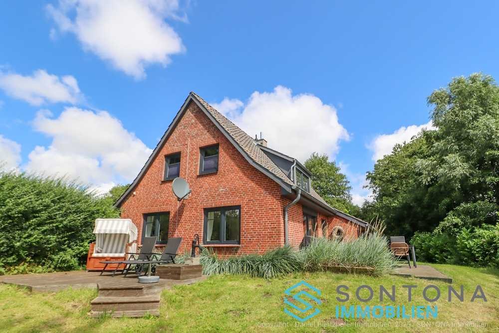 Inmitten der malerischen Halbinsel Eiderstedt, direkt am idyllischen Eiderdeich, erwartet Sie dieses charmante, exklusive Einfamilienhaus. Ursprünglich 1965 in solider Rotklinkerbauweise errichtet, wurde es 2006-2007 kernsaniert und präsentiert sich heute in einem hervorragenden und gepflegten Zustand mit zwei neu angelegten Terrassen sowie neuem Zaun.