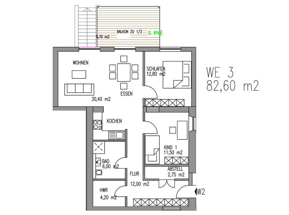 Das Angebot bezieht sich auf die Wohnung 3 im Obergeschoß des Hauses 20 c. Die Wohnung besteht aus dem attraktiven Bereich Wohnen/Essen/Kochen von ca. 31 m² mit Zugang zum großen Balkon von ca. 12 m². Von der zentralen Diele mit Garderobe erreichen Sie das helle Elternschlafzimmer von ca. 13 m², das schöne Kinderzimmer/ Büro von ca. 12 m², den Hauswirtschaftsraum mit Anschluß für Waschmaschine und Trockner sowie den funktionalen Abstellraum. Das moderne Bad kann wahlweise mit einen großen flachen Dusche oder einer Wanne ausgestattet werden. Die Wohnfläche beträgt ca. 83 m² .