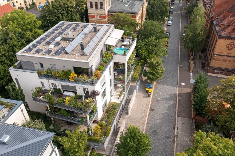Das moderne Mehrfamilienhaus mit nur 7 Wohneinheiten (KfW-Effizienzhaus 70) wurde im Jahr 2015 neu erbaut und besticht nicht nur durch seine zeitgemäße Architektur, sondern auch durch seine besondere Lage.