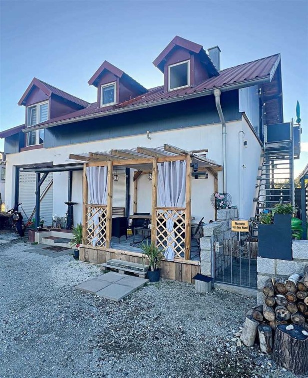 Über den kleinen Balkon mit Außentreppe gelangen Sie in den Garten, welcher ebenfalls von den Eigentümern neu angelegt wurde. Neben einer großen Blockhütte wurde auch eine weitere Terrasse mit Überdachung errichtet.