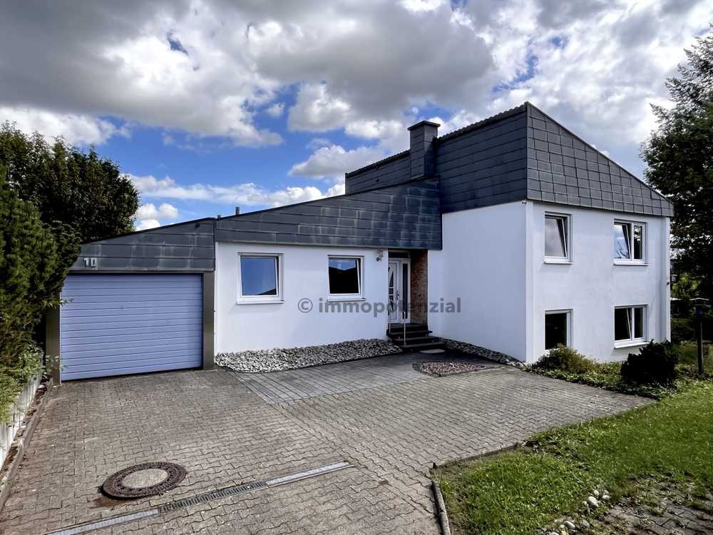 Das gepflegte Einfamilienhaus wurde in den 1970er Jahren in Split-Level Bauweise gebaut und bietet mit ca. 149 m² Wohnfläche und Garten ausreichend Platz für Familien mit Kindern. Die Zufahrt zum Grundstück wird mit dem Nachbargrundstück geteilt, daher hat man in dem ruhigen Wohngebiet keinen Straßenverkehr direkt am Grundstück.