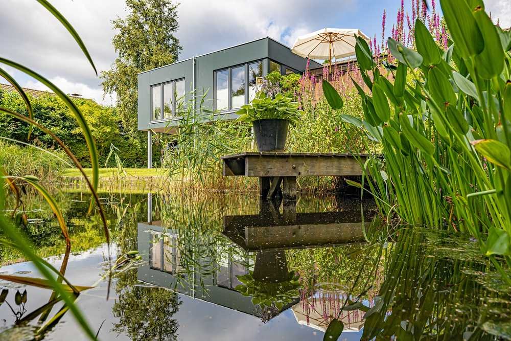 In begehrter Lage von Glücksburg-Schausende, nur wenige Gehminuten von der Ostsee entfernt, präsentiert sich dieses außergewöhnliche Wohnensemble als harmonische Verbindung von Tradition und Moderne. Auf einem großzügigen Grundstück von ca. 1.600 m² wurde ein charmantes Holzhaus aus dem Jahr 1986 mit einem eleganten und hochwertig errichteten Anbau von 2017 kombiniert – ein gelungenes Zusammenspiel aus natürlichem Wohngefühl und zeitgemäßem Komfort. Die insgesamt ca. 156 m² Wohnfläche verteilen sich auf helle, durchdacht gestaltete Räume mit offenem Grundriss und viel Tageslicht. Große Fensterfronten sorgen für eine freundliche Atmosphäre und schaffen einen fließenden Übergang zwischen Innen- und Außenbereich. Der Wohnbereich ist mit einem hochwertigen Holzofen ausgestattet, der nicht nur für wohlige Wärme, sondern auch für ein behagliches Ambiente sorgt. In der modernen Einbauküche mit zeitlosen Fronten und hochwertigen Geräten lässt sich komfortabel kochen und genießen – ob im Alltag oder beim Empfang von Gästen. Im Neubau sorgt eine Fußbodenheizung in ausgewählten Bereichen sowie moderne, energieeffiziente Dämmung für angenehmes Wohnklima. Die zeitgemäß ausgestatteten Bäder mit Tageslicht überzeugen durch stilvolles Design, hochwertige Armaturen und eine funktionale Raumaufteilung. Auf mehreren Terrassenbereichen mit verschiedenen Ausrichtungen genießen Sie sonnige Stunden, Ruhe und einen weiten Blick ins Grüne. Der große Garten mit Rasenflächen und altem Baumbestand bietet nicht nur Entfaltungsspielraum für Familien oder Hobbygärtner, sondern auch Rückzugsorte in absoluter Privatsphäre.