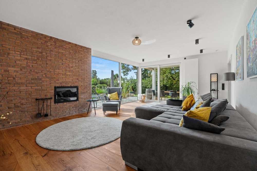Mit ca. 259 m² Wohnfläche, verteilt auf sieben Zimmer, bietet das Haus Platz für unterschiedliche Lebenskonzepte und große Familien. Im Erdgeschoss erwarten Sie eine offene, lichtdurchflutete Wohnküche mit bodentiefen Fensterelementen und gemütlichem Pellet-Ofen, ein einladendes Wohnzimmer mit Zugang zur Terrasse, ein Elternschlafzimmer, zwei Kinderzimmer, ein modernes Bad mit Wanne und Dusche sowie ein großzügiger Eingangsbereich mit repräsentativem Flur.