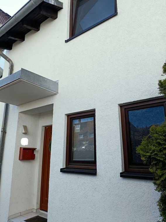 Das Haus verfügt über gemütliche Dachgauben und eine verglaste Treppenhausfront. Das Bad und Gäste WC verfügen jeweils über ein Fenster.