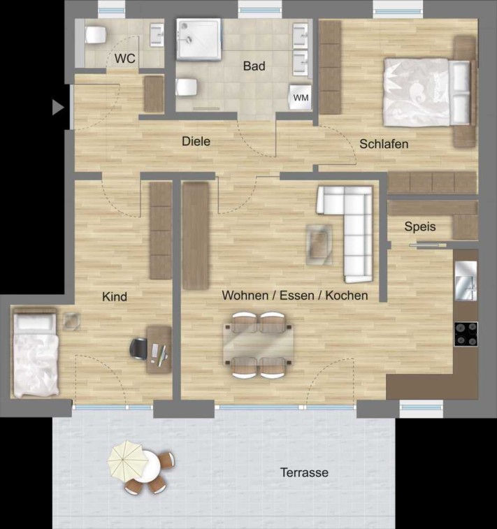 Alle Grundrisse sind so konzipiert ,dass sie optimal genutzt werden können. So entstehen helle, offene und einladende Wohnbereiche, die für hohe Wohnqualität sorgen. Jede