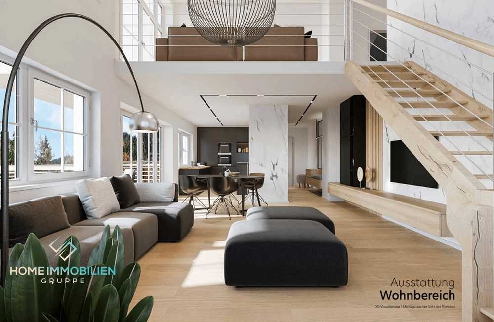 Die großzügigen Wohnraumaufteilungen und die hochwertige Ausstattung mit natürlichen Materialien wie Holz und Naturstein schaffen ein modernes, authentisches und traditionelles Ambiente mit echtem Alpenfeeling. Die klare Linie im Design der Innen- und Außenarchitektur verbindet den Wohnraum harmonisch mit der beeindruckenden Umgebung. Die unterschiedlichen Wohnungen unterscheiden sich in Lage und Ausstattung. Die hier gezeigten Bilder entsprechen nicht den jeweiligen Wohnungen!