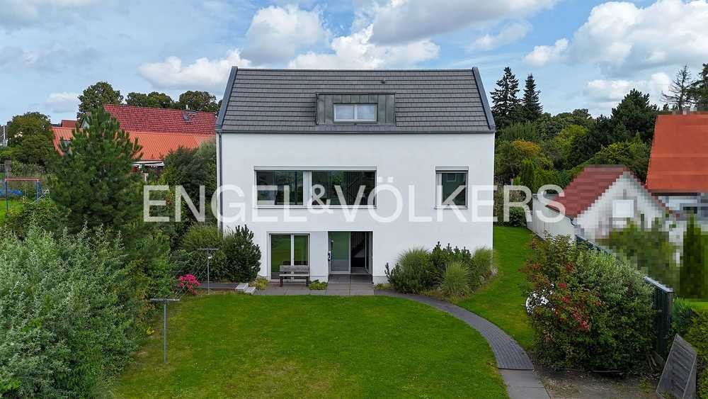 In ruhiger Lage und dennoch zentrumsnah – nur wenige Gehminuten vom Marktplatz entfernt – präsentiert sich dieses hochwertige Einfamilienhaus aus dem Baujahr 2017 als echtes Raumwunder. Auf einem ca. 851 m² großen Grundstück vereinen sich moderne Architektur, durchdachte Raumplanung und hochwertige Technik zu einem stimmigen Gesamtbild. Die Wohnfläche beträgt ca. 189 m², die Gesamtnutzfläche rund 227 m². Insgesamt stehen acht Zimmer, darunter fünf Schlafzimmer und drei stilvoll ausgestattete Duschbäder, zur Verfügung. Das offene Raumkonzept mit klaren Linien und großzügigen Fensterflächen schafft eine helle, einladende Atmosphäre. Elektrisch steuerbare Außenjalousien regulieren den Lichteinfall individuell und tragen zur Energieeffizienz bei. Im Wohnbereich wurde ein durchgehender Bodenbelag aus edlem Naturschiefer verlegt, der den zeitlosen Charakter des Hauses unterstreicht. Dieser ist harmonisch auf den markanten, rostfarbenen Look der Geländer abgestimmt. Massive Betondecken sorgen für eine exzellente Schalldämmung, während in den privaten Bereichen hochwertige Eichendielen für eine warme, natürliche Akzentuierung sorgen. Die großzügige Terrasse, die nahtlos an den Wohnbereich anschließt, ist ein besonderes Highlight und ideal für entspannte Stunden im Freien oder gesellige Abende. Die Hanglage des Grundstücks sorgt für eine angenehme Helligkeit und vielseitige Nutzungsmöglichkeiten im Untergeschoss, das beispielsweise als Gäste-, Arbeits- oder Hobbybereich genutzt werden kann. Praktische Nebenräume wie Hauswirtschafts- und Abstellflächen runden das Angebot ab. Die technische Ausstattung ist hochwertig und zukunftsorientiert. Eine moderne Erdwärmeanlage in Kombination mit einer Fußbodenheizung sorgt für eine nachhaltige und gleichmäßige Wärmeversorgung. Eine kontrollierte Wohnraumlüftung gewährleistet ein angenehmes Raumklima. Zusätzlich bieten ein zentrales Staubsaugersystem sowie eine Grünbeck-Wasserenthärtungsanlage hohen Komfort. Die Immobilie wird unmöbliert übergeben. Im Kaufpreis enthalten sind jedoch die vorhandene Küchenzeile einschließlich Backofen und Geschirrspülmaschine.