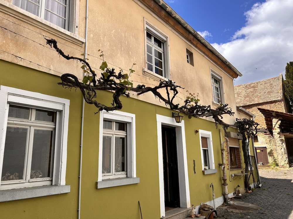 Charmantes Bauernhaus mit viel Platz für Familie, Mehrgenerationenwohnen, Arbeiten und Hobby! Dieses großzügige Bauernhaus bietet weiterhin eine lange Hofeinfahrt, eine Kelterhalle mit Unterstand, einen alten Weinkeller, einen Garten sowie Überreste einer Scheune. Besonders zu erwähnen ist, dass das Anwesen zwei separate Einfahrten und Zufahren hat. Die eine Zufahrt erfolgt über die Wohnhaus-Seite, die zweite rückseitig, über die Kelterhalle. Somit wäre eine Trennung in zwei getrennte Anwesen ein Leichtes.