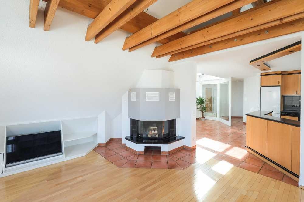 Unter den Dachschrägen wurden - ebenfalls vom Schreiner - individuell angefertigte Regale und Schränke mit Schiebetüren eingebaut, die viel Stauraum bieten. Über der Wohnung liegt noch ein dazugehöriger Dachboden über den man über eine Einschubtreppe gelangt. Er besitzt eine Fläche von ca. 30 qm. Als Besonderheit gibt hier ein großes Fenster in Richtung Süden - Nutzung als Zusatzschlafraum und/oder Abstellfläche.