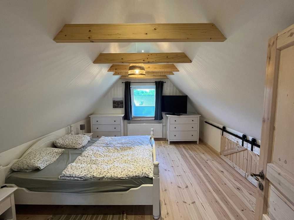 beherbergt ein Schlafzimmer sowie ein weiteres Zimmer, das sich ideal als Arbeitszimmer eignet. Das Dach wurde gedämmt und der