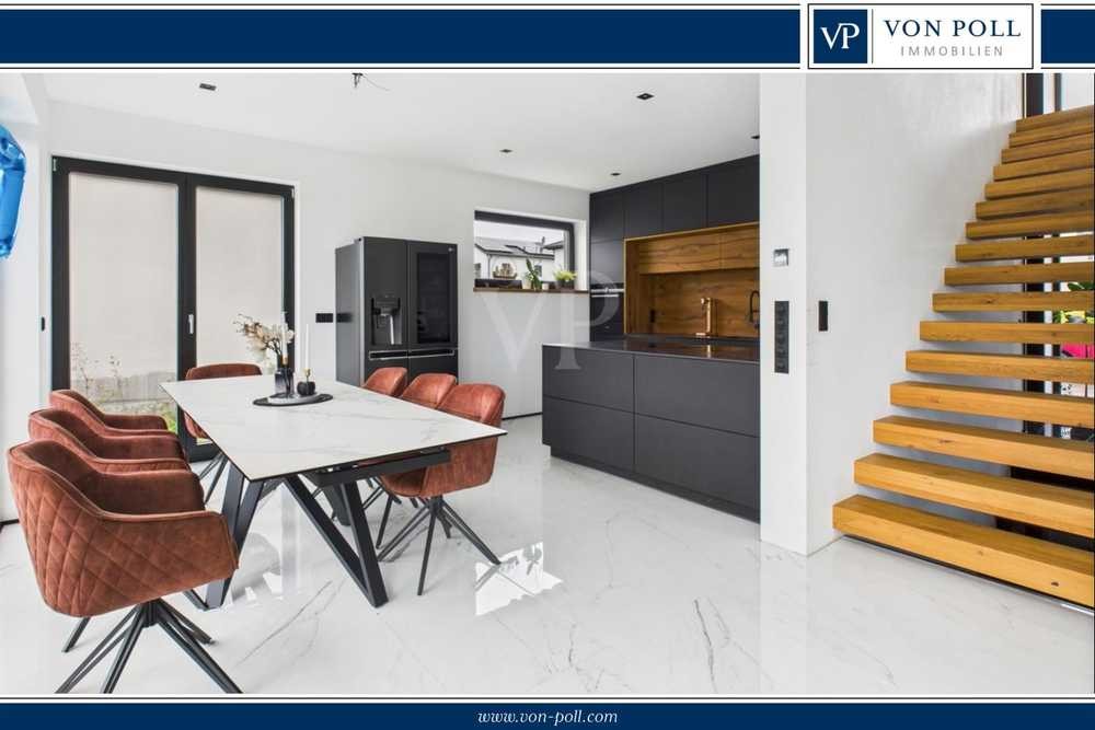 Die moderne Einbauküche grenzt direkt an den Ess-/Wohnbereich und ist mit sämtlichen hochwertigen Geräten ausgestattet. Funktionalität und ansprechendes Design gehen hier Hand in Hand, was das Kochen und Genießen zum Vergnügen macht.