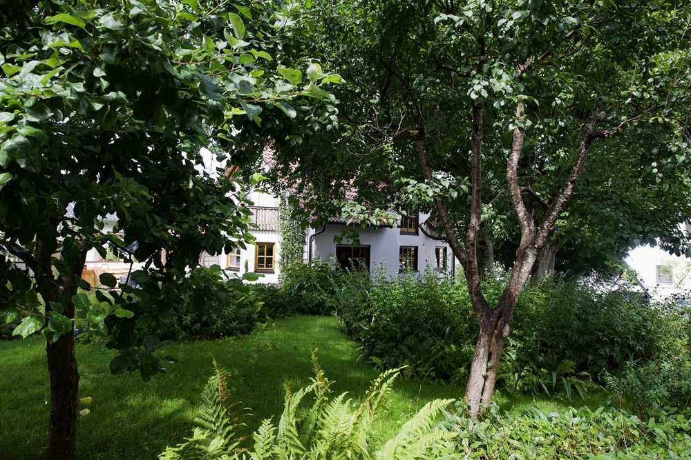 Ob man Gäste auf der Terrasse mit Blick in den herrlich angelegten Garten und auf die majestätischen Buchen empfängt oder sich gleich gemütlich am großen Esstisch zusammensetzt, entscheidet nur das Wetter.