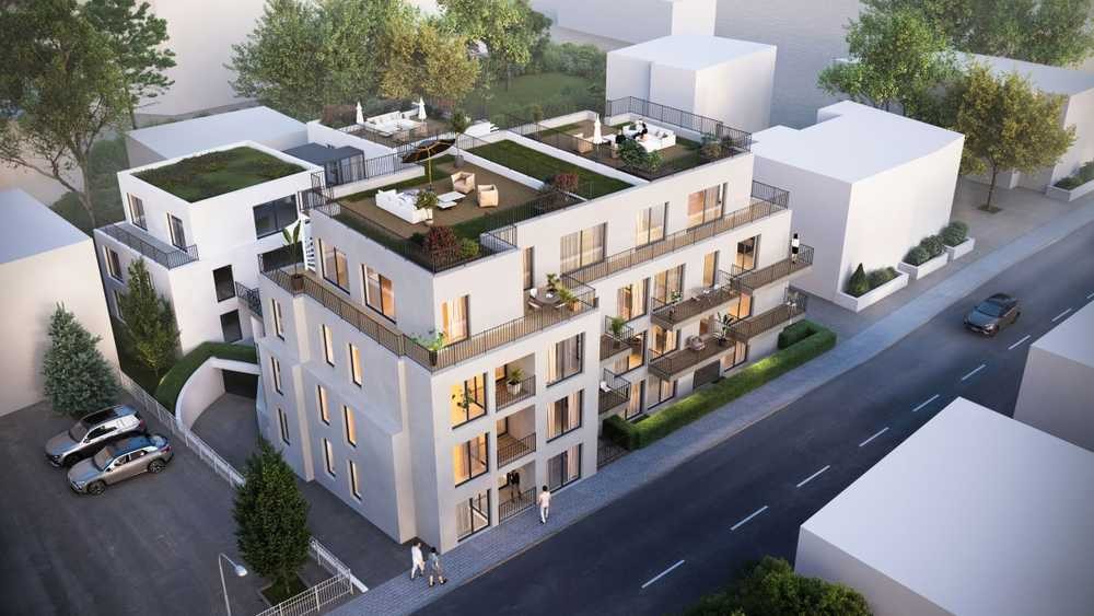 Der schicke Neubau besteht aus einem vorderen und einem hinterem Gebäude. Die Fertigstellung wird ca. Anfang 2027 sein.