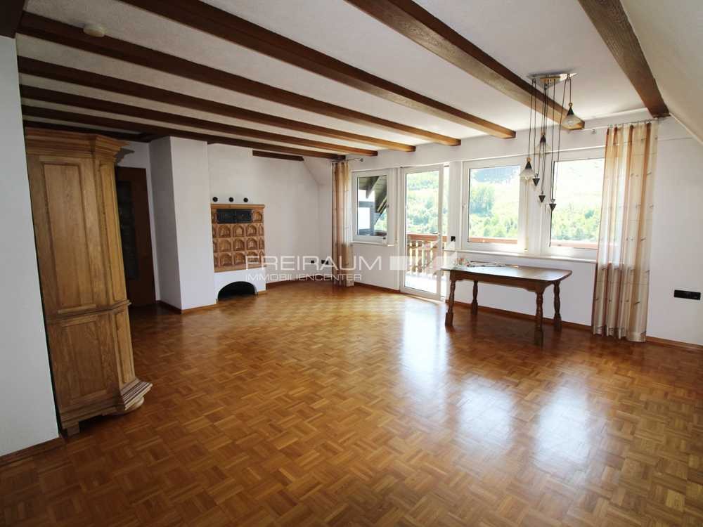 Das im Jahr 1947 errichtete Wohnhaus wurde im Jahr 1987 um einen Anbau erweitert. Somit entstanden zwei großzügige Wohnungen mit einer Wohnfläche von jeweils ca. 117 m². Die Wohnungen wurden in abgeschlossene Eigentumswohnungen aufgeteilt. Im Zuge des Anbaus wurde auch der Altbau aufwändig und mit viel Sachverstand renoviert. Eine Außentreppe führt zu einem wohnlichen Windfang und zum Hauseingang mit Zugang in's Dachgeschoss. Die Dachgeschosswohnung hat eine sonnige Loggia zur Talseite, mit unverbaubarem Fernblick. Sie verfügt über ein großes Wohn-/Esszimmer und eine helle Küche mit der Möglichkeit einen zusätzlichen Essbereich einzurichten. Im Wohnbereich gibt es einen gemütlichen Kachelofen, welcher für behagliche Wärme in der kalten Jahreszeit sorgt. Dieser wird aus einem kleinen Nebenflur befeuert. Die Wohnung verfügt über ein großes Schlafzimmer und zwei kleinere, welche auch als Büro oder Gästezimmer genutzt werden können. Das Bad mit Tageslichtfenster wurde renoviert und bietet eine übergroße Dusche. Auch gibt es in diesem Bad Anschlüsse für Waschmaschine und Trockner. Ein Flur verbindet alle Räumlichkeiten miteinander und führt in's gemeinschaftliche Treppenhaus. Von hier kann man einen Balkon mit Blick in den Garten betreten. Außerdem führt vom Treppenhaus eine Spindeltreppe in's Dachgeschoss. Hier befindet sich die Technik der Photovoltaikanlagen beider Wohnungen. Mit dem Einbau von Wandschränken wurde hier jede Menge Stauraum geschaffen. Im Anbau wurde ein Zimmer über die gesamte Gebäudetiefe mit zwei Fenstergiebeln ausgebaut (Nutzfläche). Diese Ebene kann von beiden Wohnungseigentümern gemeinschaftlich genutzt werden. Im Kellergeschoss befinden sich 2 der Dachgeschosswohnung zugehörige Kellerräume. Im gemeinschaftlichen Wasch- und Trockenraum befindet sich der Warmwasserspeicher. Aus dem 2. Kellerraum führt eine Tür zur Straße und einer weitere Tür direkt in die Garage. In den gepflegten, gemeinschaftlich genutzten Garten gelangt man über eine Außentreppe an der Eingangsfassade. Eine Gartentreppe wurde mit Findlingen angelegt. Dieser originelle Weg führt zu einer sonnigen Terrasse im oberen Grundstücksbereich. Hier öffnet ein Gartentörchen den Zugang in nahezu endlose Natur. Eine Gartenhütte bietet Stauraum für Gartengeräte und Brennholz. Von der gepflegten Rasenfläche aus genießt man einen wunderschönen Fernblick. Ein lauschiges Plätzchen mit wilden Erdbeeren und einer Gartenbank lädt hier zum Verweilen ein.