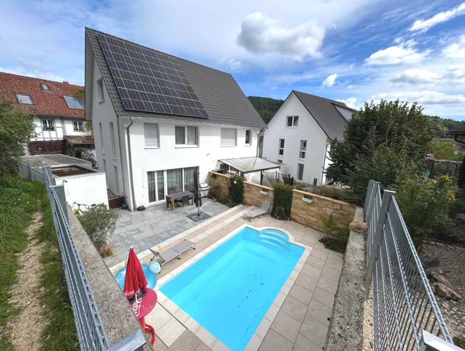Neuwertige Doppelhaushälfte mit Traumgarten und beheiztem Pool.