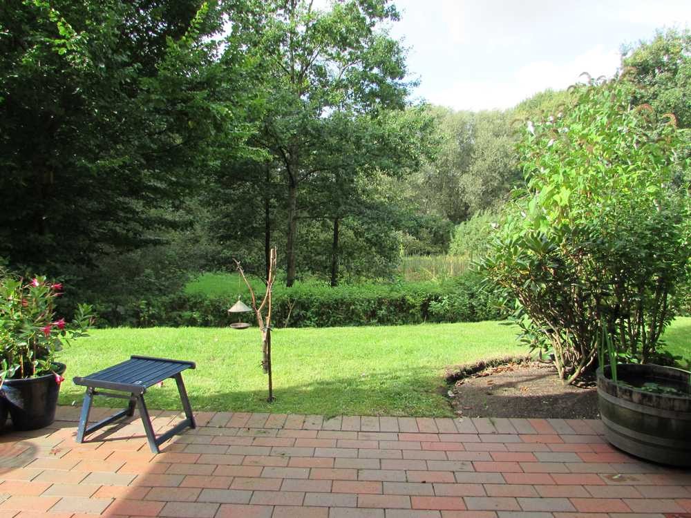Der große Lebensbereich(Wohnzimmer) mit dem Zugang zur eigenen Terrasse über Eck. Die Terrasse ist Süd/West ausgerichtet, so dass es den ganzen Tag hell ist. Der Ausblick ins unverbaubare Grün ist einfach toll. Der umliegene Garten wird vom Gärtner gepflegt.