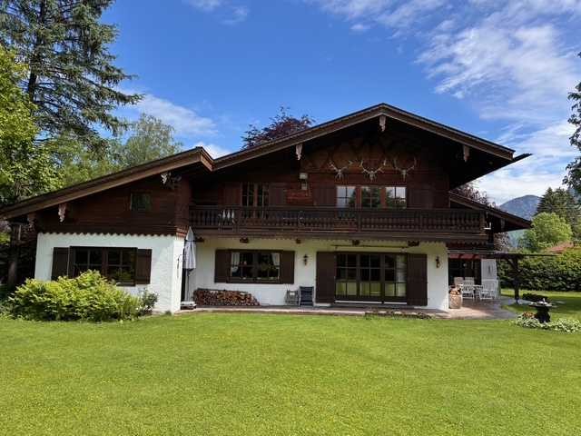 Das großzügig geschnittene rechteckige Grundstück liegt fußläufig zum Ortskern in bevorzugter südlicher Wohnlage von Rottach-Egern. Der wundervolle Garten mit Süd-Westausrichtung wird von einem wunderbaren Blick auf den Wallberg gekrönt. Durch die Weitläufigkeit, die Bepflanzung auf eigenem Grund ist das Grundstück nahezu uneinsehbar. Ein großes Wohnzimmer mit sehr schönem Kachelofen geht über in eine Stube, alles holzgetäfelt. Direkt im Anschluss an die große Küche befindet sich ein Wintergarten und angeschlossener Terrasse und Freisitz. Neben dem Haupteingang befindet sich die Garderobe und ein Gäste-WC. Von der Garage geht man trockenen Fusses durch die Waschküche in das Haus. Im ersten Stock sind 4 Schlafzimmer, zwei Bäder. Ein Bad ist behindertengerecht umgebaut. Das andere Bad verfügt über Dusche und Wanne.