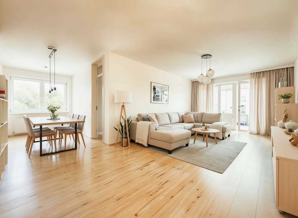 Doch auch Eigennutzer können sich freuen: Mit ihrem großzügigen L-förmigen Wohn-Essbereich, einer funktionalen U-förmigen Einbauküche mit Bosch-Geräten, einem praktischen Abstellraum sowie einem Tageslichtbad mit Badewanne erfüllt die Wohnung viele Wünsche an zeitgemäßes Wohnen. Das große Schlafzimmer und der sonnige Balkon schaffen zusätzlichen Komfort.