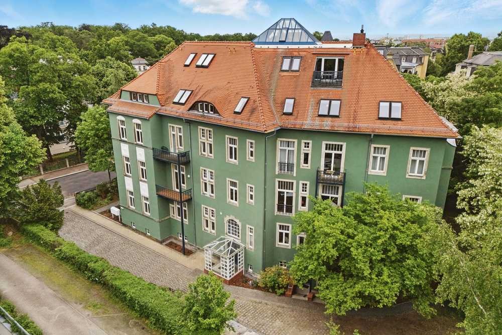 Direkt an der Goetheallee und damit in einer der prachtvollsten Wohngegenden Dresdens gelegen, befindet sich dieses denkmalgeschützte Bürgerhaus aus 1912 in hervorragender Nachbarschaft. Von den großzügigen Balkonen und Terrassen kann man den Blick auf die Elbe und die gegenüber liegenden Elbschlösser genießen. Umgeben von einem einladenden Gartengrundstück stehen den Mietern hier großzügige, herrschaftliche Wohnungen zu Verfügung. Das Erscheinungsbild der Villa ist vom späten Jugendstil geprägt und ein repräsentatives Beispiel der Architektur des beginnenden 20. Jahrhunderts.