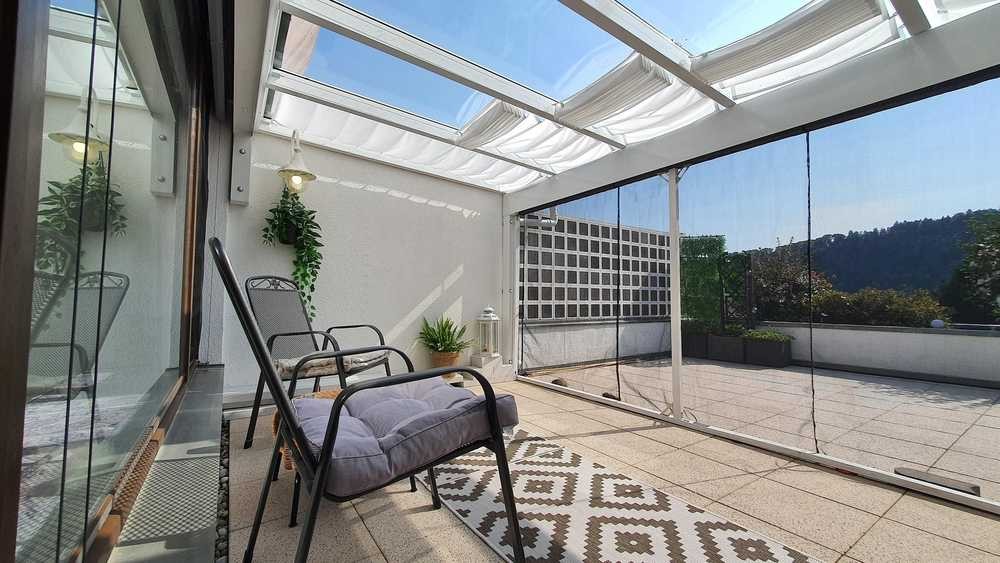 Diese gepflegte und gehoben ausgestattete Terrassenwohnung besticht durch ihre durchdachte Raumaufteilung, hochwertige Ausstattung und eine außergewöhnlich große, nach Südwesten ausgerichtete Terrasse (37m²) mit ungestörtem Blick ins Grüne. Die teils überdachte Fläche (ca.12m²) ermöglicht entspanntes Verweilen bei jeder Witterung. Der XXL-Blumentrog entlang der Terrasse sorgt für stilvolle Begrünung.