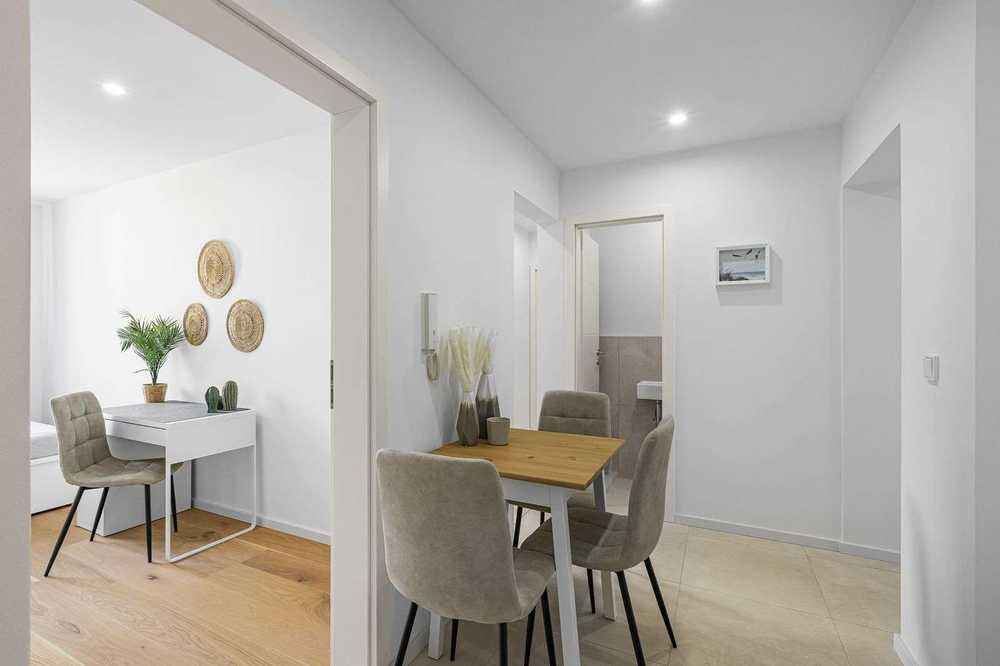 Die ca. 57,4 Quadratmeter verteilen sich effizient auf drei Zimmer, welche sich ideal zur WG oder Einzelzimmervermietung eignen, mit reichlich Tageslicht und einem großen Süd-West-Balkon. Die moderne und separate Küche ist mit modernen Geräten ausgestattet.