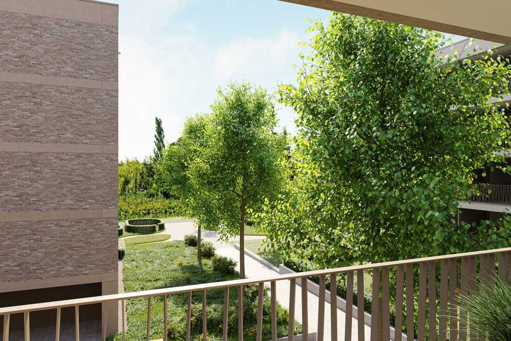 Das Vierlinden-Quartier zeichnet sich nicht nur durch hochwertige und komfortable Eigentumswohnungen aus, die alle mit überdachten Terrassen oder Loggien ausgestattet sind, sondern vor allem durch großzügige Grün- und Freiflächen, die von einem Landschaftsarchitekten geplant wurden. Das Quartier bleibt zu einem großen Teil unbebaut und autofrei und bietet so viel Raum für Ruhe und Erholung.