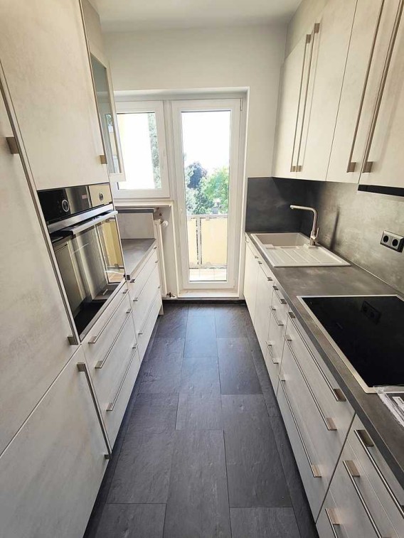 Die Wohnung besticht durch ihre moderne Ausstattung und durchdachte Raumaufteilung. Sie befindet sich im obersten Stockwerk und bietet nicht nur eine schöne Aussicht, sondern auch ein behagliches ruhiges Wohngefühl. Besonders hervorzuheben ist der großzügige Balkon, der direkt vom Schlafzimmer aus zugänglich ist und einen angenehmen Weitblick bietet. Ein kleiner überdachte Balkon (Loggia) an der Küche eignet sich perfekt für den morgendlichen Kaffee.