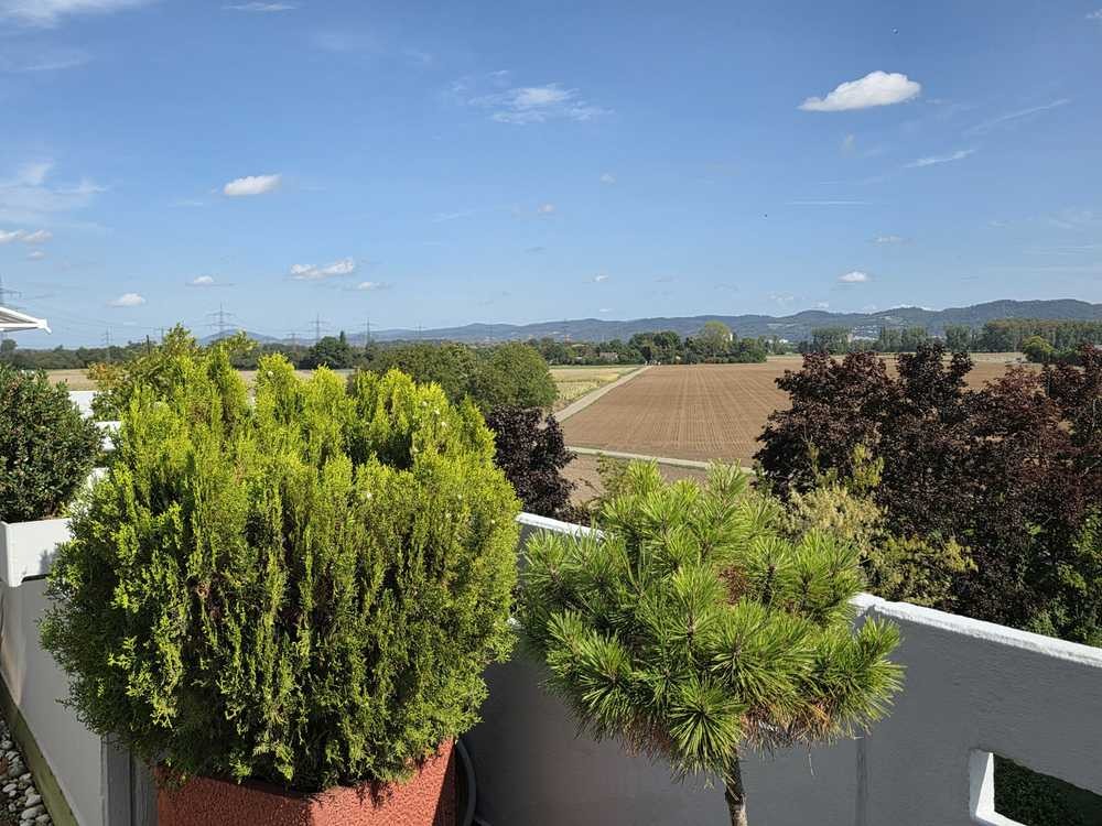 Über die beiden sehr schön angelegten und großzügigen Aussenterassen, hat man einen unvergleichbaren Weitblick zu den Burgen an die Bergstrasse und nach Ladenburg/Mannheim.