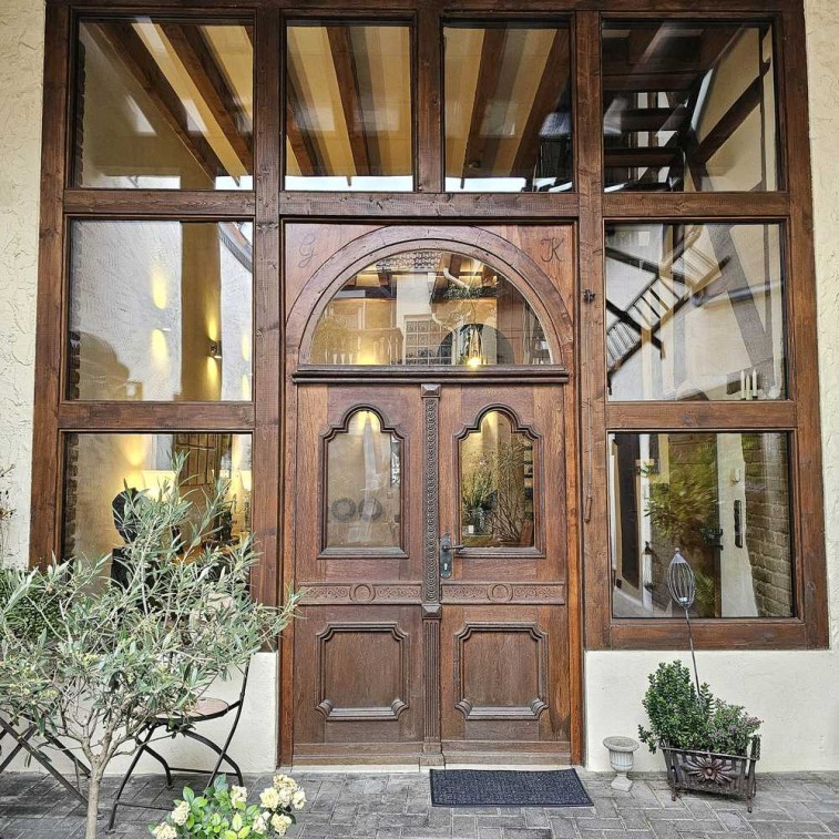 Das historische Haupthaus, zuletzt 1975 erweitert, bietet sowohl über den Innenhof als auch direkt von der Straße Zugang. Im Erdgeschoss befinden sich ein großzügiger Eingangsbereich, ein Wohnzimmer, eine separate Küche mit Einbauküche, eine Abstellkammer sowie ein Gäste-WC. Das Obergeschoss bietet drei Schlafzimmer, ein Tageslichtbad mit Dusche und einen Balkon. Ausgestattet ist das Haus mit Fliesen, Parkett und doppelt verglasten Kunststofffenstern. Zwischen 2017 und 2018 wurden Modernisierungen wie die Elektrik und das neue Badezimmer vorgenommen. Aktuell ist das Wohnhaus gewerblich vermietet, kann jedoch bei Eigenbedarf sofort bezogen werden.