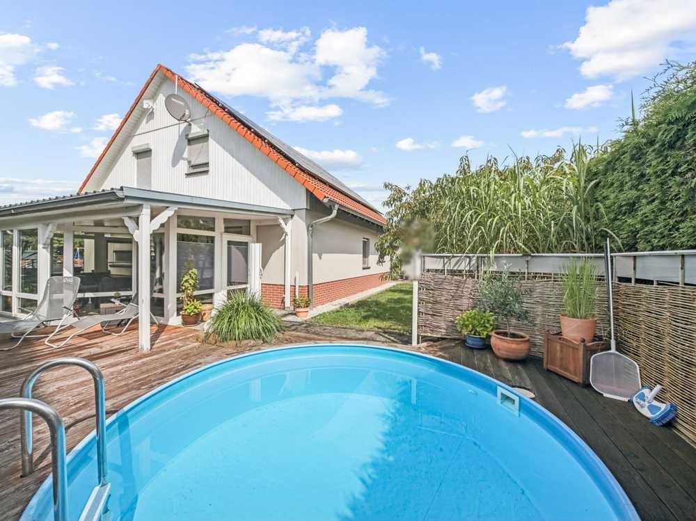 Die Außenfassade wurde erst ca. 2025 frisch erneuert und präsentiert das Haus in modernem Gewand. Ein echtes Highlight ist die Photovoltaikanlage aus ca. 2022, die nachhaltige Energieversorgung ermöglicht und die Nebenkosten spürbar senken kann. Der gepflegte Außenbereich mit Pool lädt in den Sommermonaten zum Erholen ein. Für Fahrzeuge steht neben der Einfahrt eine Garage zur Verfügung.
