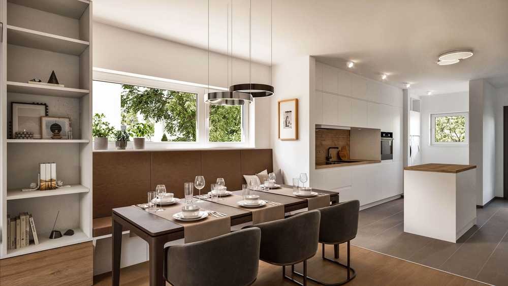 Die klug geplanten Gebäude schaffen Raum für das alltägliche Familienleben, mit ausreichend Platz für Rückzug und für Begegnungen. Was alle Häuser verbindet, ist der Blick fürs Detail: ein einladender und zugleich funktionaler Eingangsbereich. Eine private Gartenfläche mit ausreichend Platz für eine Lounge mit Grill und Spielgeräten für die Kinder. Eine Dachterrasse als zweites Open-Air-Wohnzimmer. Sorgfältig integrierte Elemente wie Gartenboxen und Fahrradgaragen vervollständigen das Bild. Auch im Inneren wird die Haltung sichtbar: In Materialien, die sich zurücknehmen. In Farben, die Ruhe schaffen. Und durch eine Haustechnik, die effizient, flächensparend, energieschonend und unaufdringlich eingebunden ist. So entsteht ein Zuhause, das nicht erklären will, was es kann. Sondern zeigt, was es ermöglicht: ein Leben in Struktur, Freiheit und gestalterischer Klarheit.