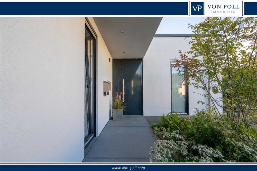Dieser moderne Architekten-Bungalow aus dem Jahr 2014 ist ein Zuhause für Menschen, die Architektur, Design und Natur in Einklang erleben möchten. Auf einer Ebene erstrecken sich ca. 155 m² Wohnfläche – lichtdurchflutet, großzügig und klar gestaltet. Herzstück des Hauses ist ein Atrium mit Wasserbecken, dass in seiner Gestaltung japanische Anklänge trägt und eine Atmosphäre der Ruhe und Gelassenheit schafft.