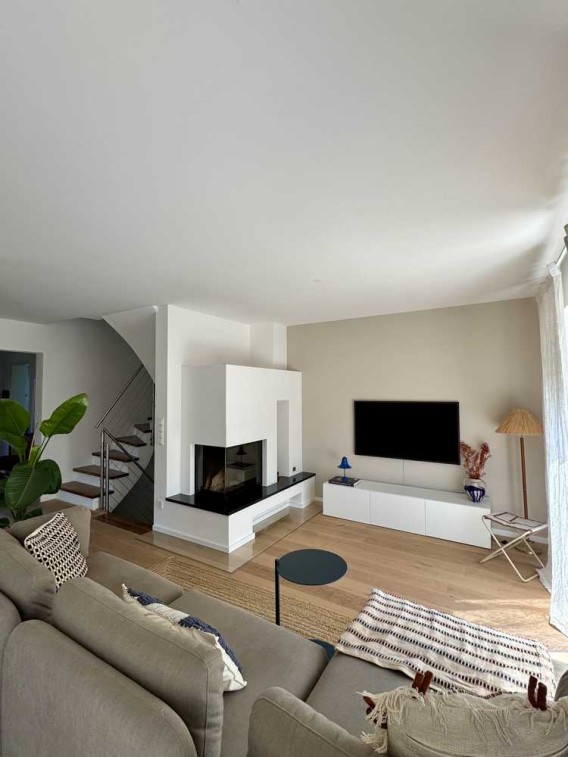 - Im Erdgeschoss sorgen ein großzügiger, heller Wohn-/Essbereich mit Kamin und Zugang zum sonnigen Garten sowie eine hochwertige Einbauküche für Wohnkomfort auf höchstem Niveau.
