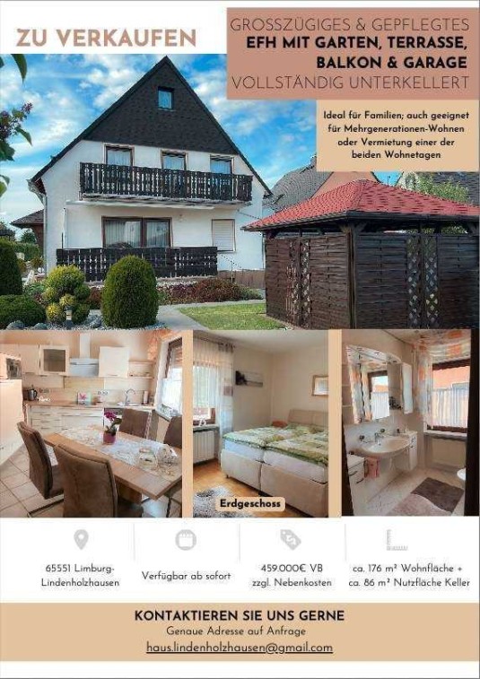 Bei dem zweistöckigen, sehr gepflegten und voll unterkellerten Einfamilienhaus von 1966 handelt es sich um eine attraktive Immobilie in super Lage in Lindenholzhausen vor den Toren Limburgs. Das Haus bietet sieben Zimmer, die Sie ganz nach Ihrem persönlichen Geschmack einrichten können. Die zwei Geschosse könnten ohne Probleme in zwei separate Wohneinheiten aufgeteilt werden. Das Haus eignet sich daher perfekt für Familien, Mehrgenerationen-Wohnen oder für Vermietung einer der beiden Wohnetagen. Im Haus liegt Echtholzparkett, zum Teil Laminat oder auch Fliesen.