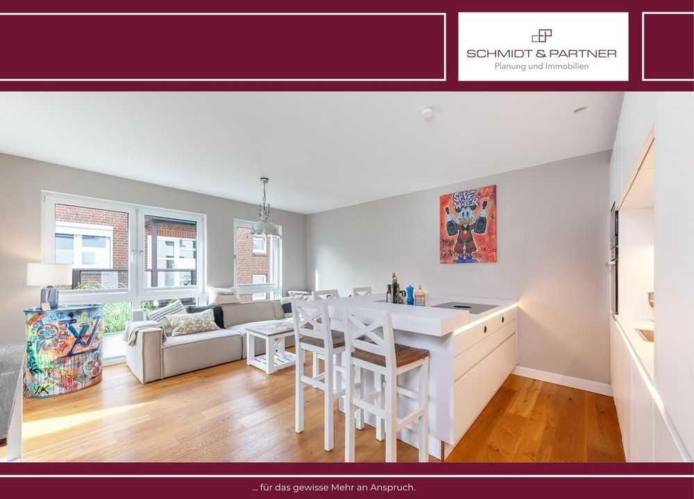 Auf rund 75 m² Wohnfläche erwartet Sie eine durchdachte Raumaufteilung, die modernes Wohnen mit einem Hauch von Luxus verbindet – in ruhiger Sackgassenlage, direkt am Kammerwald und nur etwa 700 Meter vom Strand entfernt.