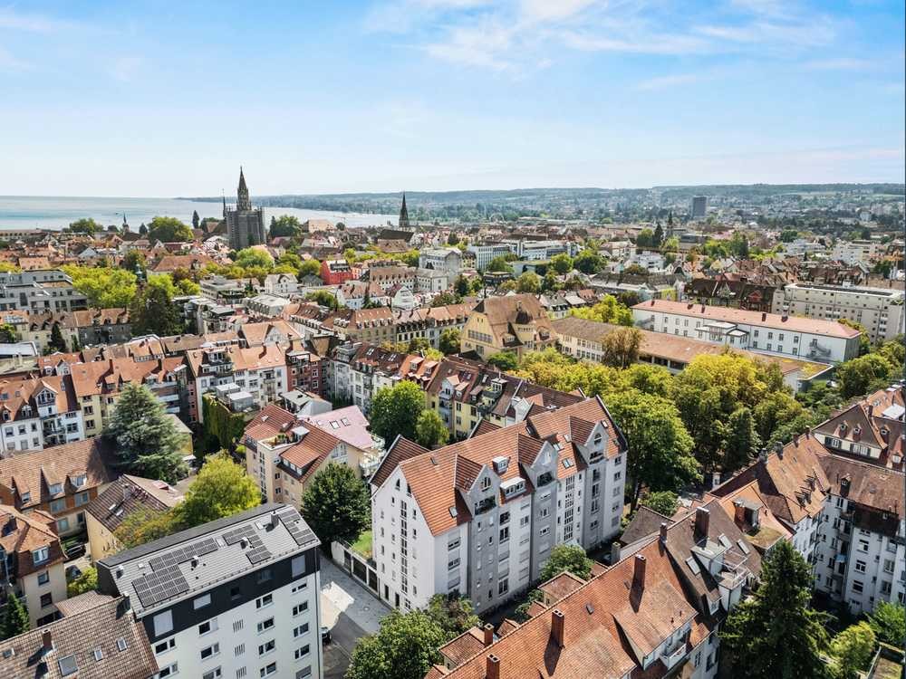 Ein besonderes Highlight: der Süd-Balkon. Hier genießen Sie sonnige Stunden mit Blick auf das Konstanzer Münster und in den alten Kastanienbestand des Ellenrieder Gymnasiums – ein Ort, an dem jeder Kaffee, jedes Glas Wein und jeder Abendhimmel zum kleinen Erlebnis wird.