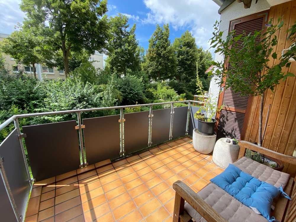 Sowohl in der Wohnung, als auch vom Balkon kann man herrlich ins Grüne blicken und Eichhörnchen beim Nüsse sammeln beobachten.