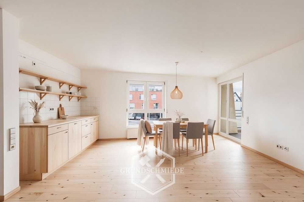 Die Wohnung überzeugt durch einen großzügigen, offenen Wohn- und Essbereich mit direktem Zugang zum Balkon. Die offene Küche bietet ausreichend Platz für eine individuelle Einbauküche nach Ihren Vorstellungen. Das große Schlafzimmer bietet viel Raum für Ruhe und Rückzug. Das moderne Badezimmer ist mit einer bodentiefen Dusche und einem WC ausgestattet – ebenfalls komplett barrierefrei.