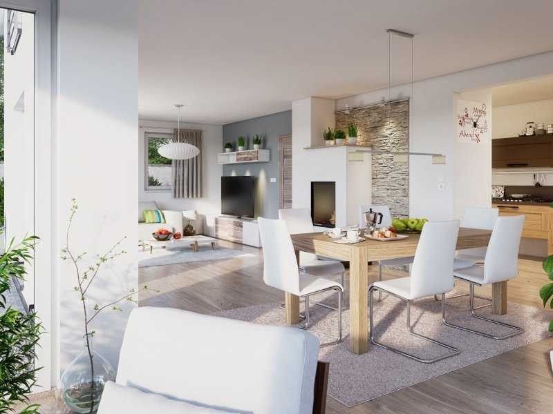 Schon auf den ersten Blick entdecken Sie bei dieser Haus-Idee von RENSCH-HAUS die überaus familienfreundliche Überlegung, sowie die klare und überlegte Designsprache. Diese Grundrisslösung mit einer Gesamtfläche von über 150 m² begrüßt Sie und Ihre Gäste bereits im Erdgeschoss mit einem großzügigen Dielenbereich - mit viel Platz auch für Ihre Garderobe. Wenn Sie es wünschen ist im geräumigen Gäste-WC die Einplanung einer Dusche möglich. Das Erdgeschoss hat - mit direktem Zugang in Ihren Garten - ein Homeoffice zu bieten, das Sie auch als Gästezimmer nutzen können. Von der offenen Küche aus erreichen Sie Ihren Wohn- und Essbereich: genießen Sie hier mit Ihren Lieben ein großzügiges Wohngefühl. Als weiteres Highlight sorgt der Übereck auskragende Cube mit Rundum-Verglasung für viel Licht in Ihrer gemütlichen Relax-Zone. Im Dachgeschoss freuen sich Ihre Kinder in den beiden großzügigen und sehr hell gestalteten Räumen auf ihre persönliche Welt. Ein großzügiges und sehr variables Familienbad lässt keine Wünsche offen. Das geräumige Elternschlafzimmer mit integriertem Ankleidebereich garantiert Ihnen nach einem anstrengenden Arbeitstag einen idealen Rückzugsort zum Entspannen. Die Außenansicht erhält durch einen dritten Giebel mit einer attraktiven Flachdach-Gestaltung ein sehr modernes und zeitgemäßes Gesicht.