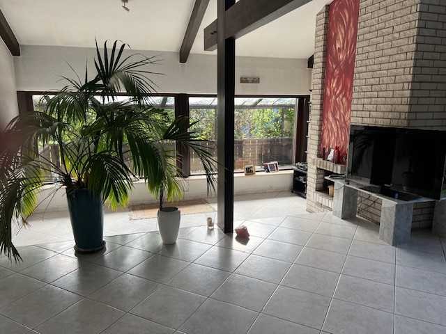 Klare Linien und viel Glas prägen das Objekt. Große Fenster verleihen der Immobilie Licht und Helligkeit. Sie betreten das Architektenhaus über eine große Diele, welche vom Wohnbereich durch eine Glastür abgetrennt ist. Von hier gelangt man ins gemütliche ca. 50 qm Wohnzimmer, mit offenem Kamin,