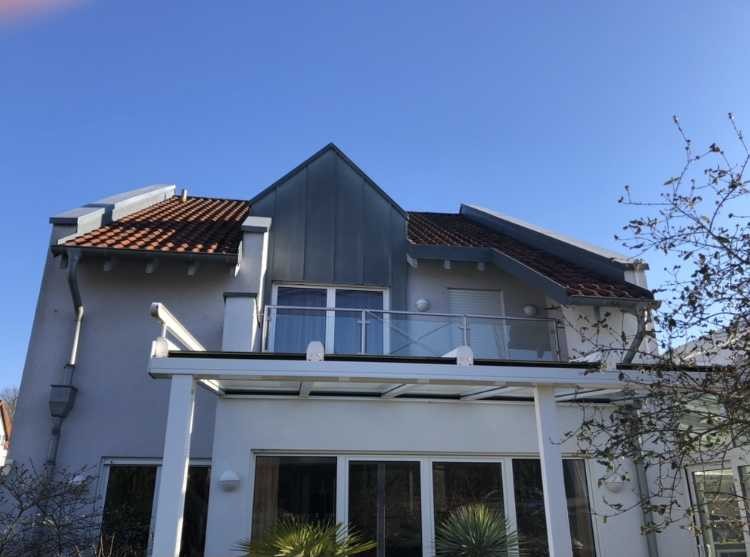 Das moderne, massiv gebaute Architektenhaus steht auf einem 644 m² großen fast uneinsehbaren Grundstück und besticht durch seine durchdachte, lichtdurchflutete Raumaufteilung, wie auch durch die verbauten Edelstahl-, Glas- und Zinkelementen im Innen und im Außenbereich. Im Erdgeschoss erwartet Sie ausgehend vom einladenden großzügigen gefliesten Entreebereich ein Wohn-/Schlafzimmer von ca. 27 m². Falls ein Bad en suite gewünscht wäre, könnte man dies mit dem angrenzenden voll ausgestatteten Tages-Duschbad schnell verwirklichen, da in der Bauphase dazu schon Vorkehrungen getroffen wurden. Durch den hellen Dielen-/Flurbereich, der auch 2 deckenhohe maßgefertigte Einbauschränke beinhaltet, gelangt man, an einem 2. Tages-Duschbad vorbei, welches bislang als Gästebad genutzt wurde, und einem Arbeitszimmer, in die große offene lichtverwöhnte Wohnküche (Nolte) mit herrlichem Terrassen-/Gartenblick durch die 4m breite, bodentiefe Aluminiumfensterfront.