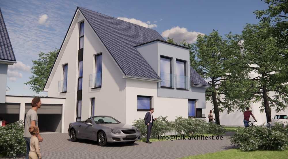 Vermesser hat unser Architekt ein Haus geplant, das exakt auf dieses Grundstück zugeschnitten ist.