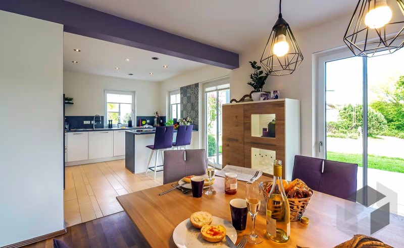 • Den Wohnbereich mit offener Küche und Esszimmer