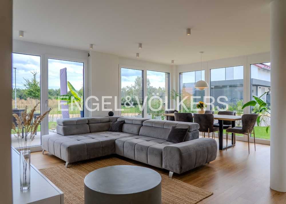 Diese im April 2024 fertiggestellte Erdgeschosswohnung vereint luxuriöse Ausstattung mit modernem Wohnkomfort und beeindruckt durch ihre großzügige Gestaltung. In einem ansprechenden 10-Familienhaus gelegen, bietet sie barrierefreien Zugang sowohl vom Eingangsbereich als auch komfortabel per Aufzug aus dem Untergeschoss. Das Herzstück der Wohnung ist der weitläufige Wohn- und Essbereich, der mit einer erstklassigen Einbauküche der Fabermanufaktur ausgestattet ist. Die großzügige Kochinsel setzt mit ihrer Arbeitsplatte, den Wangen und der Rückwand aus hochwertiger Keramik in der Farbe „Calaretta Michelangelo“ einen besonderen Akzent. Sämtliche Elektrogeräte sind von der Premiummarke Miele und lassen keine Wünsche offen. Die Wohnräume sind mit einem stilvollen Vinylboden in Holzoptik ausgestattet, kombiniert mit einer Fußbodenheizung samt Einzelraumsteuerung. Alle Wände sind mit hochwertigem Maler-Vlies versehen, das für eine edle und zugleich zeitlose Raumwirkung sorgt. Ergänzt wird der Wohnkomfort durch ein modernes Smart-Home-System, das eine intuitive Steuerung von Licht, Heizung und Beschattung ermöglicht. Ein Elternschlafzimmer, Kinderzimmer, ein Arbeitszimmer und ein praktischer Abstellraum sowie zwei luxuriös ausgestattete Bäder unterstreichen die durchdachte Planung. Das große Tageslichtbad begeistert mit Badewanne, Doppelwaschtisch mit Unterschrank, beleuchtetem Spiegel, bodentiefer Raindance-Dusche und WC; ein weiteres Duschbad in identischer Ausstattung ergänzt das Angebot. Schwarze Unterputzarmaturen setzen in beiden Bädern stilvolle Akzente. Ein besonderes Highlight ist die nach Südosten ausgerichtete, ca. 30 m² große Terrasse mit Feinsteinzeugbelag (60 x 60) und der gepflegte Gartenanteil von ca. 232 m², der sich über beide Seiten der Wohnung erstreckt. Vollelektrische Jalousien in den Wohnräumen sowie Rollläden in den Schlafzimmern (Farbe Anthrazit) sorgen für höchsten Wohnkomfort. Im Kaufpreis inbegriffen sind die Einbauküche und der Außenstellplatz, sowie ein separater Kellerraum. Weitere Gemeinschaftsräume, wie Waschküche und ein Fahrradraum runden das Angebot hab. Das Mehrfamilienhaus hat selbstverständlich einen Hausmeisterservice. Hier finden Sie ein Zuhause, das modernes Design und höchsten Komfort harmonisch vereint – ein Ort zum Wohlfühlen, den Sie sich bei einer Besichtigung, die sich in jedem Fall lohnt, persönlich ansehen sollten.
