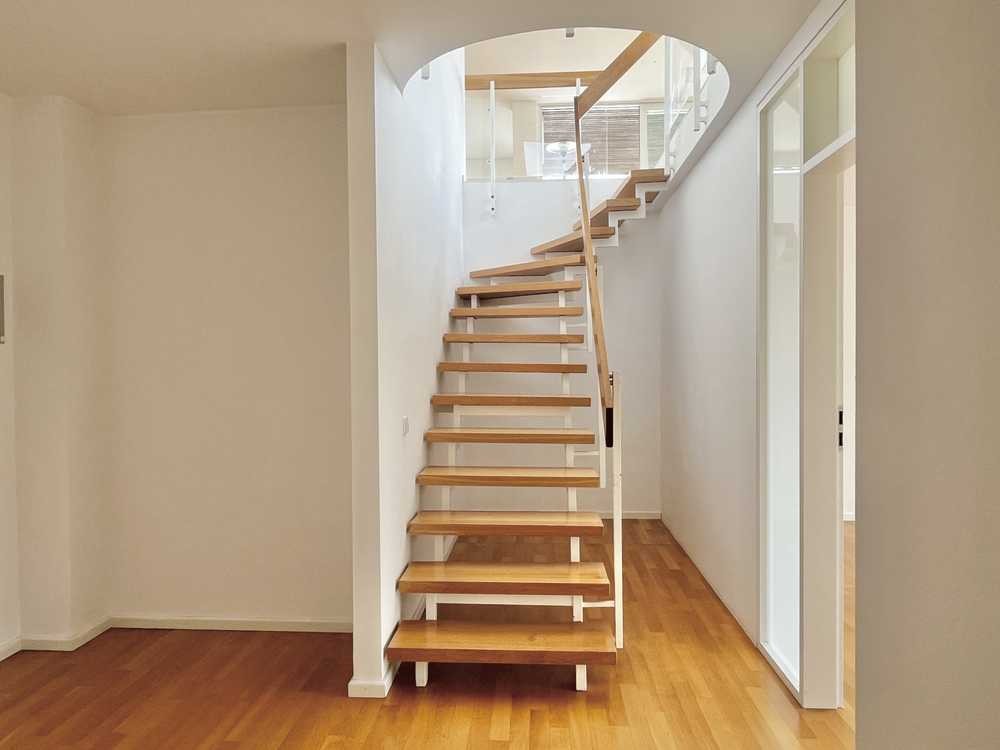 Verteilt auf einer Wohnfläche von 156 m² setzt sich die Wohnung aus 5 Zimmern, einer Küche mit moderner Einbauküche, zwei Bädern, einem Gäste-WC, einer Loggia im 2. OG sowie der Dachterrasse im 3. OG und einem Hauswirtschaftsraum zusammen.