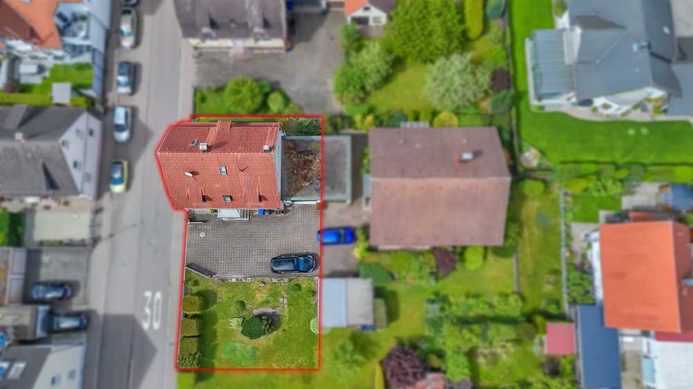 Zusätzlich besteht ein eingetragenes Überfahrtsrecht für das hinten liegende Nachbarhaus, das den Zugang zur rückwärtigen Grundstücksfläche gewährleistet.